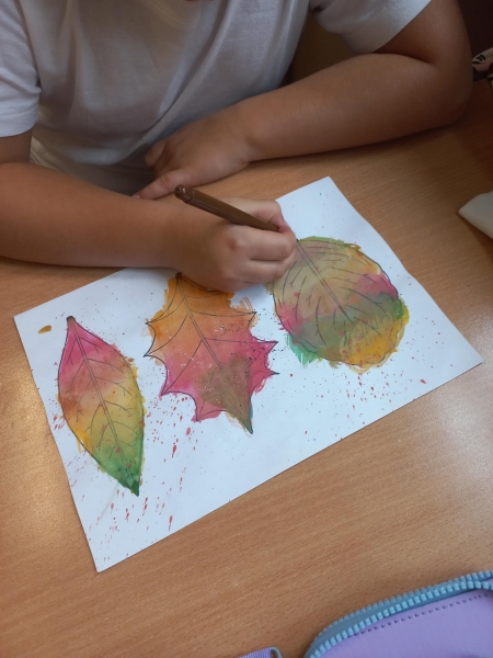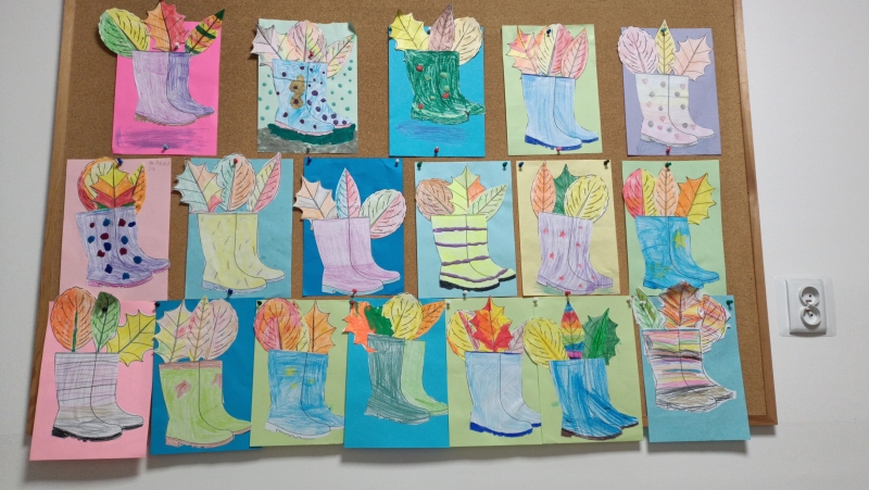 Dzień spadającego liścia - przywitanie jesieni w klasach 1-3. Prace uczniów działających w ramach Małego Samorządu Szkolnego.