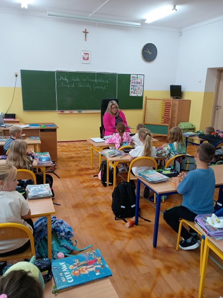 Uczniowie wykonywali sałatki, tworzyli prace plastyczne do wierszy Jana Brzechwy, brali udział w Dniu Bajkowej Postaci, przyłączyli się do akcji Dzień Przeciwdziałania Przemocy wobec Dzieci.