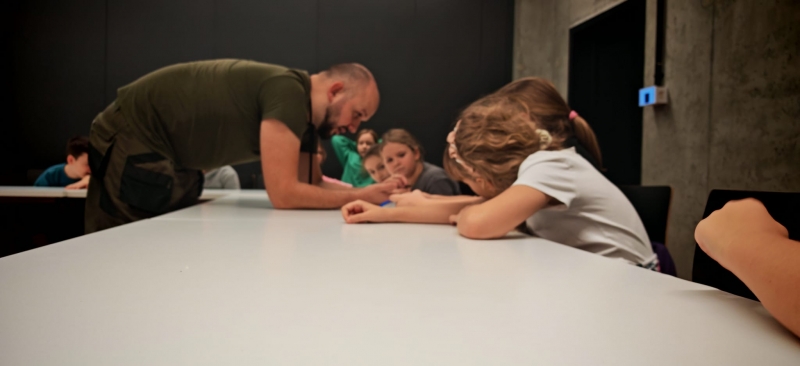 Po przyjeździe na miejsce uczniowie rozpoczęli zwiedzanie od części poświęconej gadom i płazom oraz wzięli udział w warsztatach. Dzieci miały okazję z bliska obserwować ich wygląd, sposób poruszania się oraz dowiedzieć się, czym żywią się na co dzień.