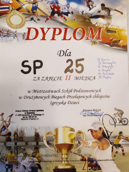 20 kwietnia 2026 roku odbyły się Szkolne Mistrzostwa Województwa Śląskiego - Zawody Rejonowe Igrzysk Młodzieży Szkolnej w koszykówce dziewcząt, w których udział wzięły po dwie najlepsze szkoły z Jaworzna oraz Sosnowca. Rywalizacja była bardzo zacięta, a drużyny prezentowały wysoki poziom sportowy. Do finału awansowały szkoły SP 25 oraz SP 40 z Sosnowca. Po emocjonującym meczu ostatecznie zajęliśmy 2 miejsce, zdobywając tytuł wicemistrzyń rejonu.